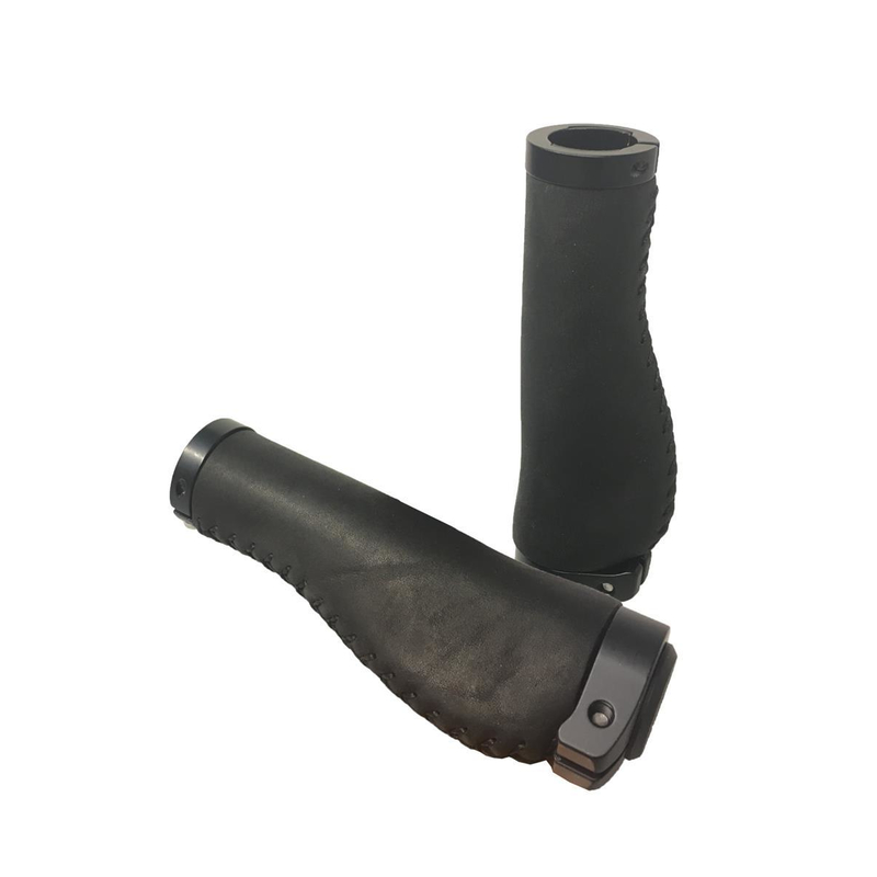 Ergonomischer Echtlederhandgriff, Hand vernäht, mit Schrauben gegen Verdrehen, einseitig fixierbar.