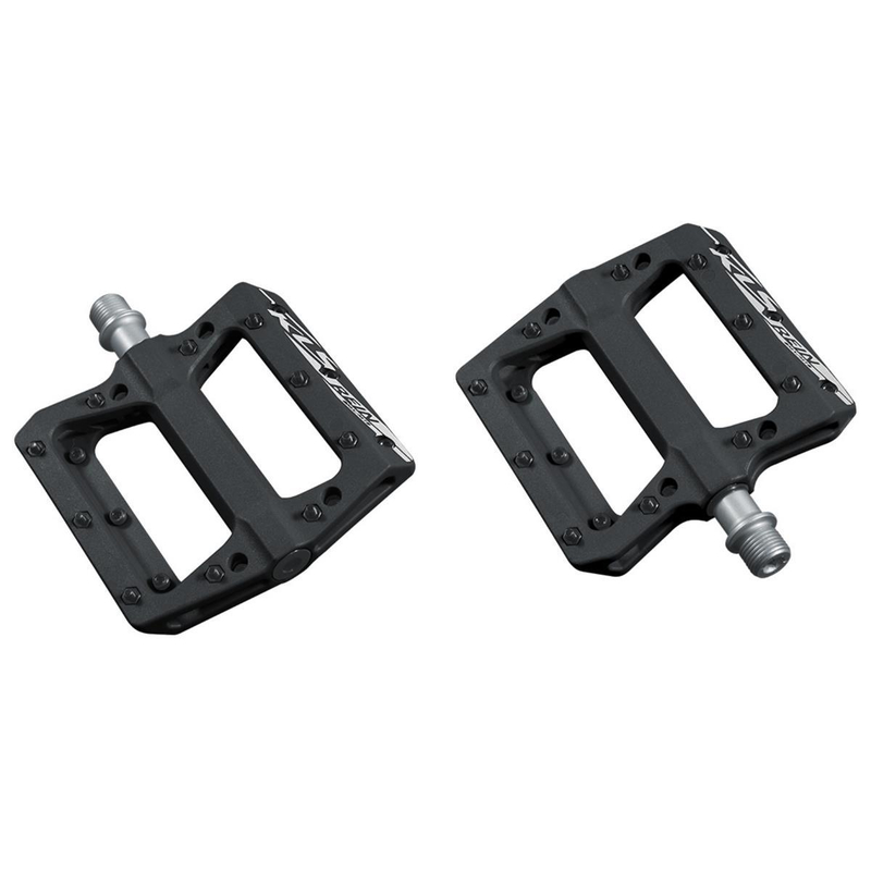Plattformpedale KLS Rein mit einem modernen Design geeignet für BMX/MTB. Glasfaserverstärkte Kunststoffplattform mit schmalen, austauschbaren Pins bietet einen sicheren Stand auf dem Pedal auch bei aggressiveren Fahrten.
