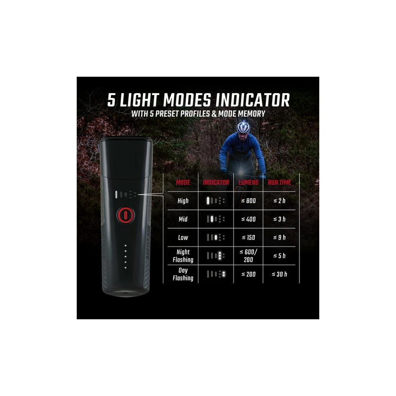 Mit der BUSTER 800 Powerleuchte haben Biker bei Dunkelheit alles im Blick. Dafür sorgen 800 Lumen und eine Leuchtweite von 170 Meter