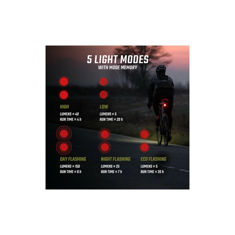 Die kleine und kompakte RL 150 Rückleuchte sorgt mit 2000 Meter nicht nur in der Nacht für gute Sichtbarkeit, sondern ist auch mehr als hell genug für Tagesausflüge