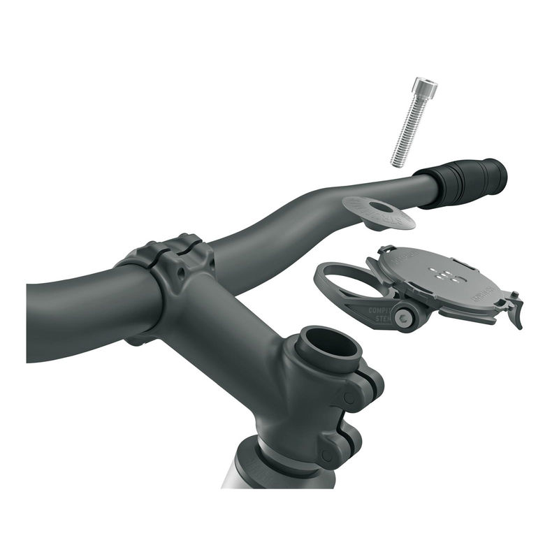 Die Handyhalterung COMPIT STEM zur Montage am Vorbau hält das Handy selbst im harten Offroad-Einsatz fest und sicher. Montiert wird die hochwertige Smartphonehalterung unterhalb der vorhandenen Steuersatzkappe (Ahead Cap) des Vorbaus. Dabei ist es unerheblich, ob noch ein Stück vom Gabelschaft frei ist, oder nicht. Mit einem Dreh lässt sich das Handy dank der Bajonettaufnahme schnell und einfach befestigen – und das in beide Richtungen. So bleibt das Cockpit clean, der Lenker frei. Der Handyhalter bietet mit seiner Vorbau-Montage außerdem eine ideale Lösung, um das COMPIT-System auch für E-Mountainbikes mit einer Lenkerklemmung von 35 mm zu verwenden.
