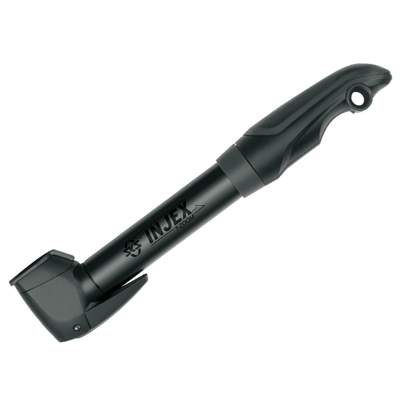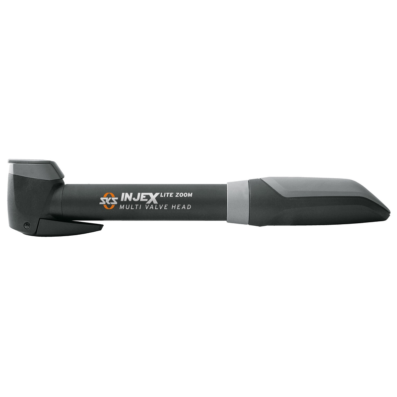 Top-Level Kompaktpumpe, mit universellem Multi Valve-Ventilanschluss. Die SKS Minipumpen Injex sind ideal für Rennrad, Trekking- und Mountainbikes, dank viel Volumen pro Hub. SKS bietet hier Griffe mit optimaler Ergonomie. Die Injex-Zoom Modelle erreichen durch die zuschaltbare Hochdruck Stufe bis zu 10 bar Maximal Druck. Volle Kontrolle auch unterwegs, mit der erfolgreichen INJEX-Familie. Sie sind, mit einem kleinen, analogen Rundmanometer, am Ende des hochwertigen Aluminium-Kompressionsrohrs ausgestattet. Der integrierte E.V.A.-Pumpenkopf passt auf alle Ventilarten. Die Teleskop Funktion und der T-Klappgriff sorgen für ein optimales und angenehmes Pumpen.