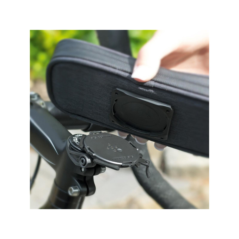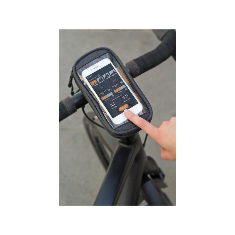 Die wasserfeste Universal-Smartphonetasche COM/SMARTBAG lässt sich dank des Adapters auf jeder COMPIT-Handyhalterung befestigen. Ein spezielles COMPIT-Cover ist somit nicht nötig. Das Handy ist immer im Blickfeld und wird gleichzeitig vor Spritzwasser geschützt. Mit einem Dreh kann die Tasche angebracht und schnell wieder abgenommen werden. Durch das große Klarsichtfenster ist eine komfortable Bedienung des Touchscreens gewährleistet, auch das Entsperren des Handys per Fingerabdruck direkt durch die Folie ist möglich. Das untere Extrafach mit gummierten Klett-Straps bietet nicht nur zusätzlichen Platz für Schlüssel und Geld, sondern auch für die COM/UNIT Powerbank zum induktiven Laden des Handys während der Fahrt. Optional kann die COM/UNIT auch direkt am COMPIT-Smartphonehalter befestigt werden, um das Handy mit einem Kabel durch die Kabelführung zu laden. Das robuste Material und der laminierte Reißverschluss mit Easy-Zip machen die Tasche zum idealen Begleiter auf Fahrradtouren bei jeder Witterung.