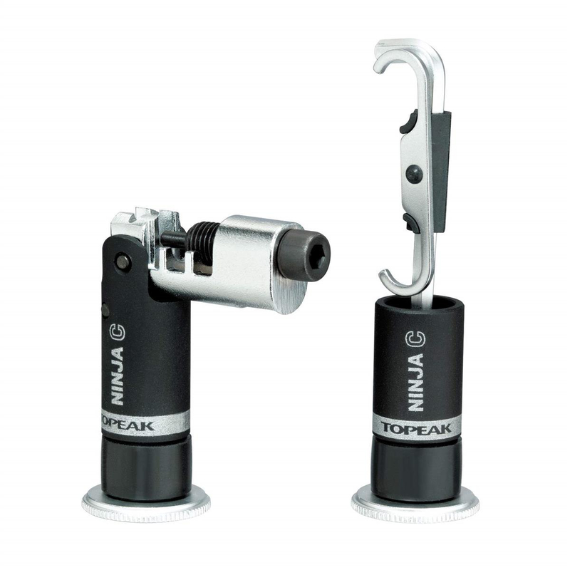 Der Ninja C Kettennieter lässt sich für eine cleane Optik unauffällig im Lenker – auch in Carbon-Lenkern – (passend für Ø von 16,5– 20 mm) verstauen, ist bei Bedarf aber dennoch schnell griffbereit. Für die meisten Single- und Multi- Speed Ketten bis 12-fach geeignet, bietet er zudem ein Fach für Kettennietstifte, einen Kettenhaken und einen 4 mm Inbus®-Schlüssel für eine einfache Bedienung. Im Lenker versteckt (passaned für alle MTB-und Rennradlenker) ist dieses Minitool ein verlässlicher Helfer unterwegs.
